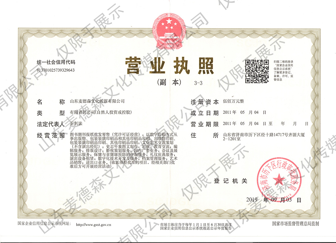 山东麦德森发展集团有限公司由“中国青年五四奖章”获得者、全国自强模范、山东省优秀共产党员王勇创立于2009年,是一家集出版印刷、中医药大数据、职业培训、医药健康、信息技术、文化旅游等产业并举的民营企业集团,员工400余名,年产值3亿元。多年来,集团公司始终坚持“扛着党旗创业、戴着党徽奉献”的理念,先后为300余名残疾人提供就业岗位,培训服务4000余名残疾人,帮助400多名农村贫困学子成长,总计捐款捐物3000余万元。
