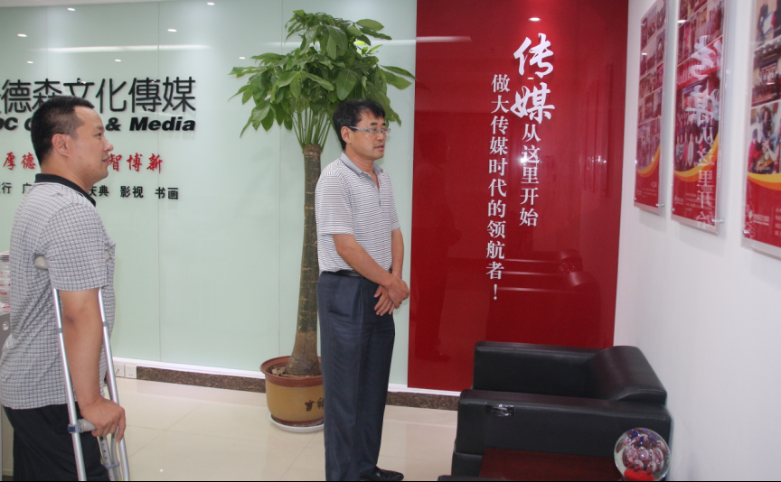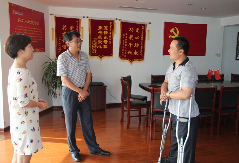 7月24日,山东省残疾人联合会宣文部鞠少华部长一行到我公司调研指导残疾人文化从业工作,并对我公司刚刚获得的“济南市残疾人文化创业就业示范基地”称号表示祝贺。