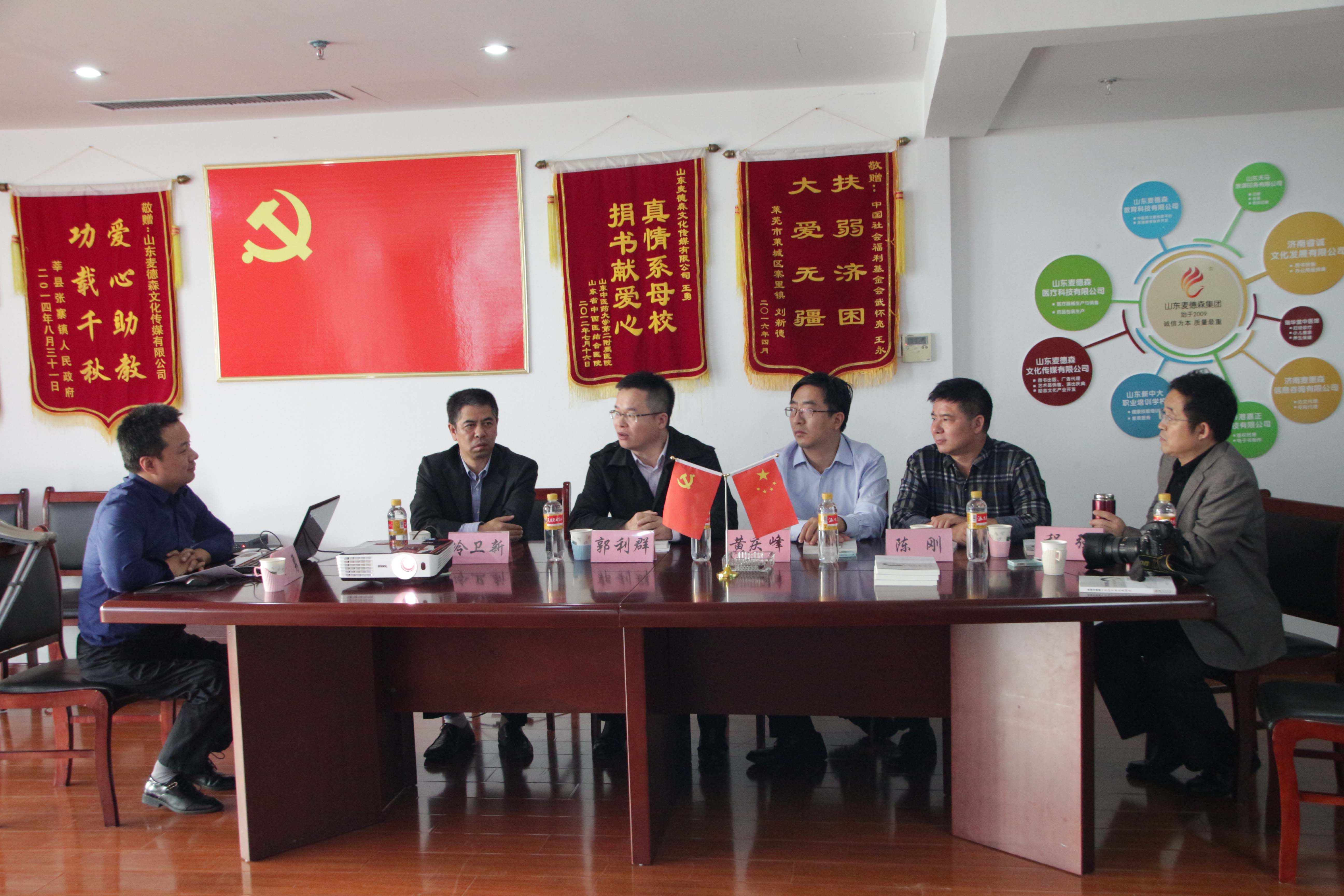 在公司会议室,王勇董事长就山东麦德森文化产业发展、济南市残疾人文联及王勇创业事迹汇报向中残联、省残联、市残联领导作了汇报。郭主任表示残疾人创业会比健全人付出更多的努力,对王勇董事长的创业精神给予肯定,并鼓励广大残疾人创业者再接再厉,闯出自己的一片天。