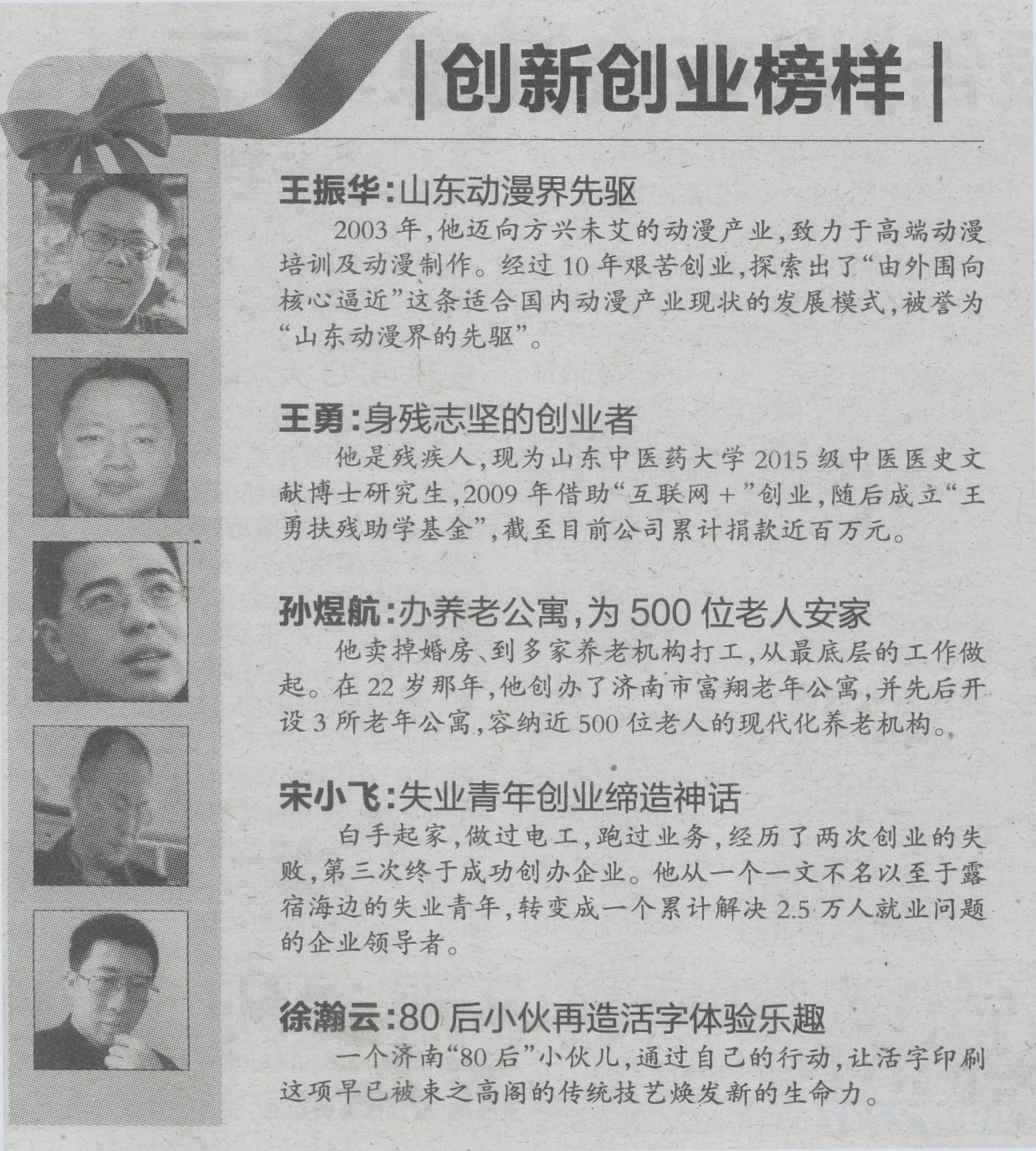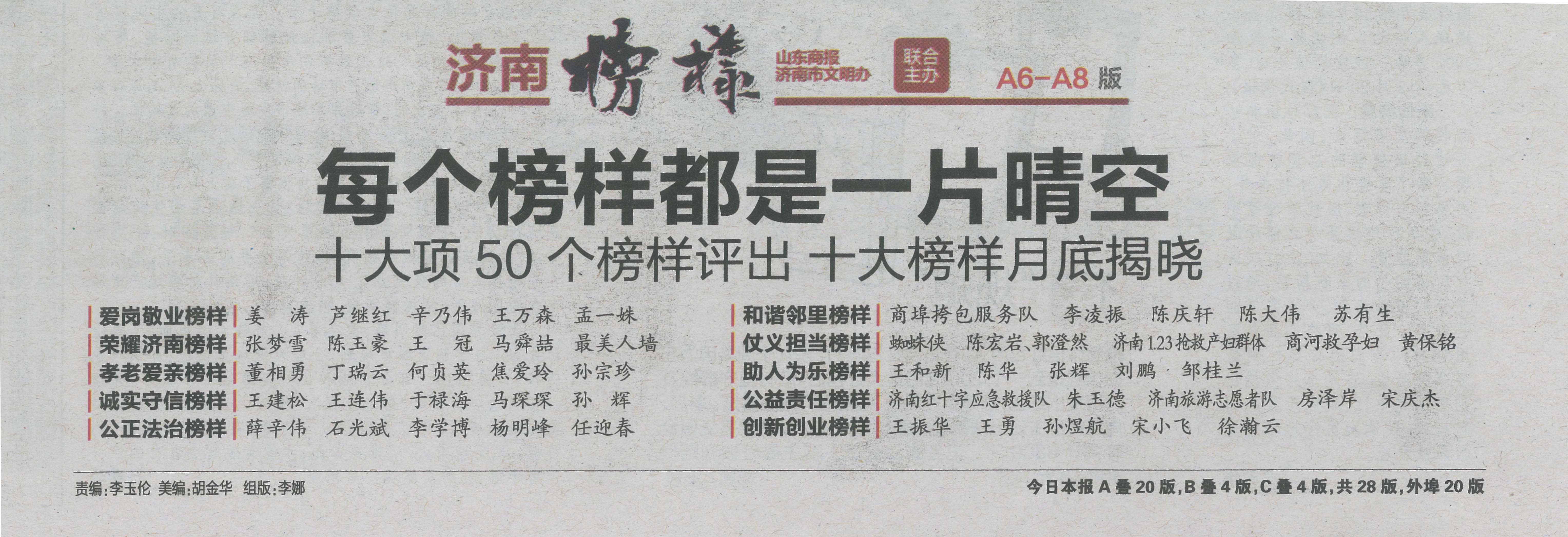 热烈祝贺我集团王勇董事长获“济南榜样”荣誉称号——记山东商报头版报道济南榜样评选结果