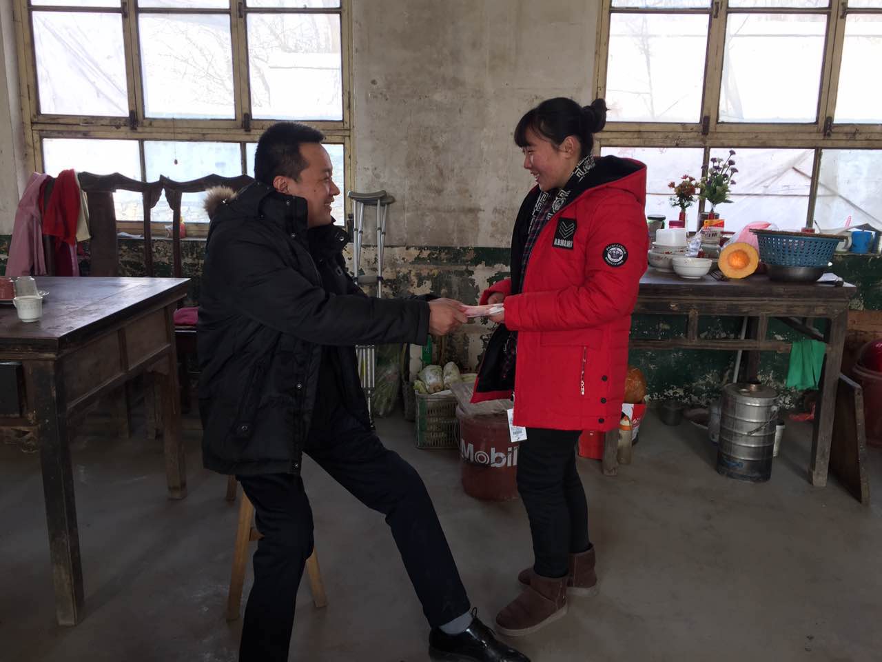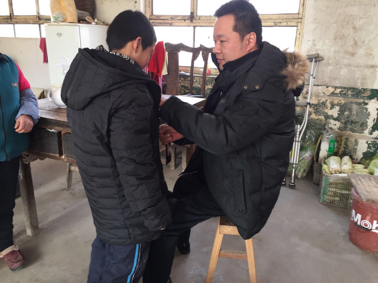 王勇走访到每一户残疾人家庭中,都和他们拉家常,仔细了解他们的身体状况和家庭生产、生活情况、孩子们的学习情况,并送去了慰问金和花生油、苹果、羽绒服等过年礼品。