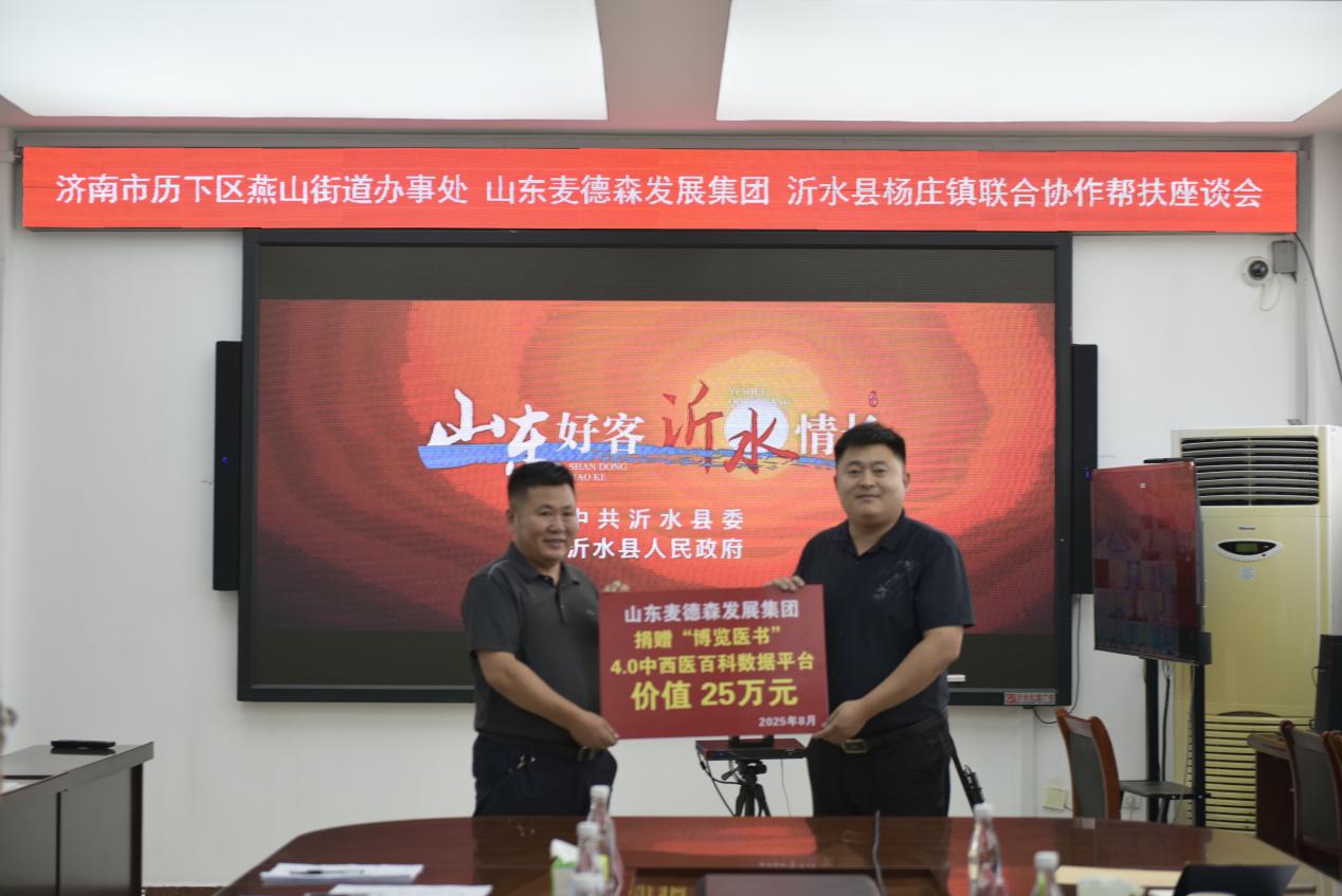 8月29日,由济南市历下区燕山街道办事处、山东麦德森发展集团、沂水县杨庄镇联合开展的协作帮扶捐赠仪式在临沂市沂水县杨庄镇人民政府举行。
