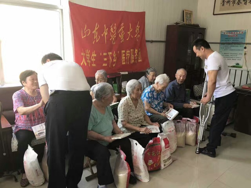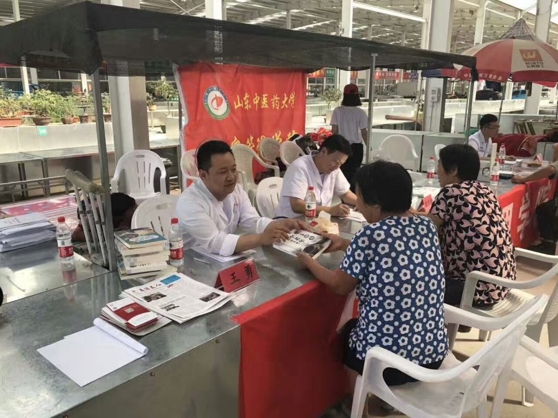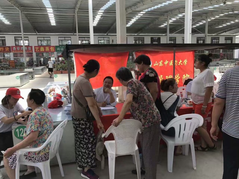 7月10日,山东中医药大学大学生“三下乡”医疗服务团在青州市王府街道角楼村农贸市场开展了义诊,田思胜教授、刘更生教授、于海芳老师以及两位博士研究生王勇、田虎莅临现场,共同展开了为期一天的爱心义诊。7月11日,服务团走进青州市博爱托老院,为托老院老人送上日常所需米面和养生保健书籍,并看望部分高寿老人。