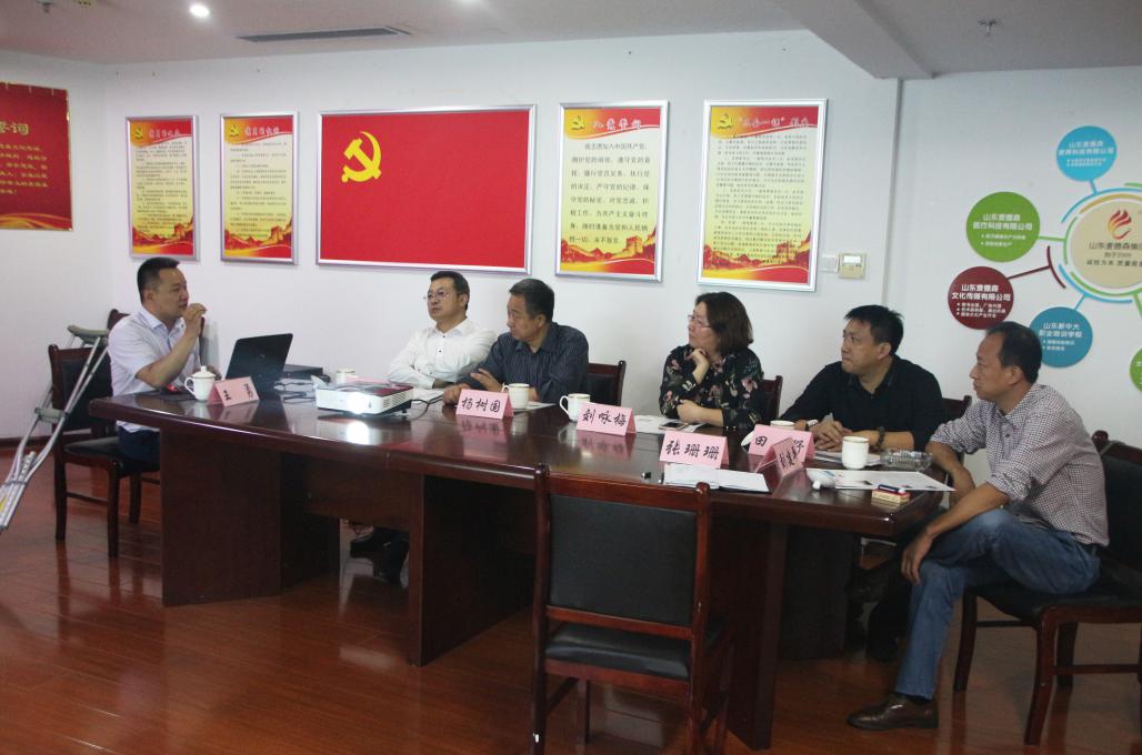在随后的工作汇报中,王勇董事长首先向领导讲解了自己创业的经历及心态目标,之后对公司整体、各部门的工作发展状况以及企业文化进行了详细的介绍。特别对于公司博览医书项目,还做了进一步的讲解与展示,王勇董事长表示,希望将我国更多优秀的医学古籍古方运用起来,通过现代网络让其更好的走进人们的生活,为大众所用。对此,杨树国巡视员表示深刻的赞同与支持,并与大家关于集团的成长发展进行了交流,给出了指导意见。汇报的最后,王勇董事长结合我集团企业文化建设,表示将继续坚持以党建为引领,发挥党员的战斗堡垒和模范带头作用,坚持“五个一”的发展目标,让集团更好更快地发展。