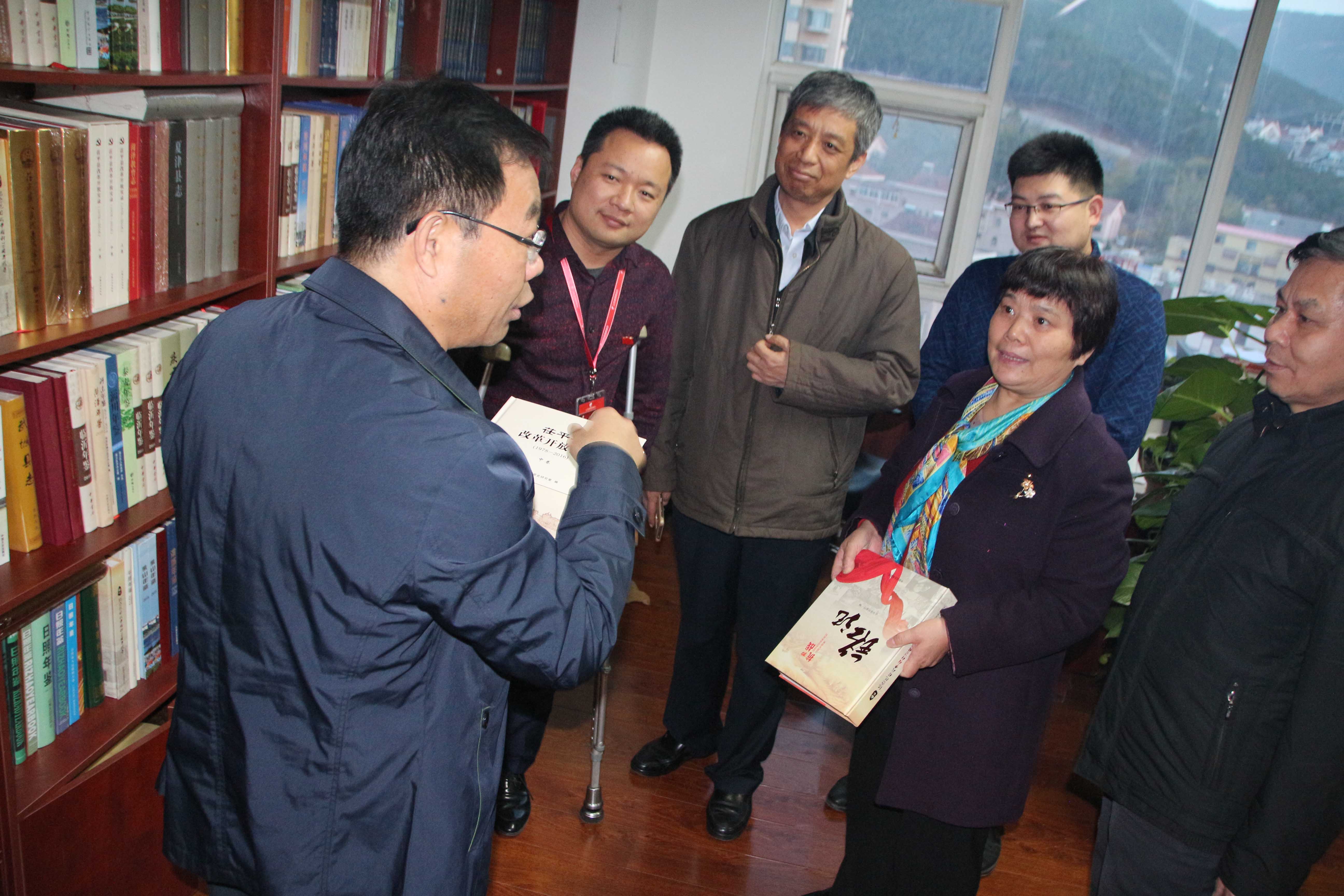 在王勇委员的引领下,领导参观了我集团的励志文化长廊、多功能活动室以及各职能部门,对我集团“以人为本,关爱员工”的理念表示认同和赞扬,为我集团大力发展残疾人文化事业的决心点赞。在参观的过程中,史志事业部的大书架吸引了领导们的目光,马素珍巡视员和刁仕军主任的工作经历使他们对志书拥有比较深厚的感情,殷切嘱咐史志事业部的全体成员,修志工作“功在当前,利在千秋”,一定要大力协助有关部门,编纂出一部部富有时代气息、彰显地方特色、经得起历史检验的精品佳志,真正起到“修志问道,以启未来”的作用。