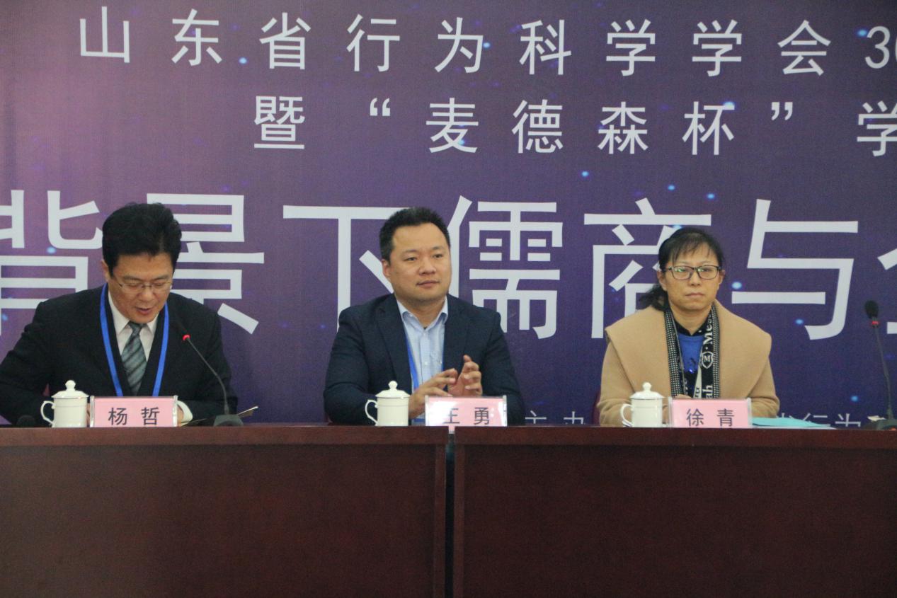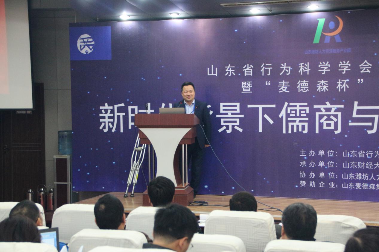 11月18日,由山东省行为科学学会主办,山东财经大学工商管理学院承办,必威平台友情赞助的2017山东省行为科学学会30周年庆典暨“麦德森杯”学术研讨会在山东财经大学舜耕校区天舜大酒店顺利举行,我集团董事长王勇受邀出席会议并做了现场报告。