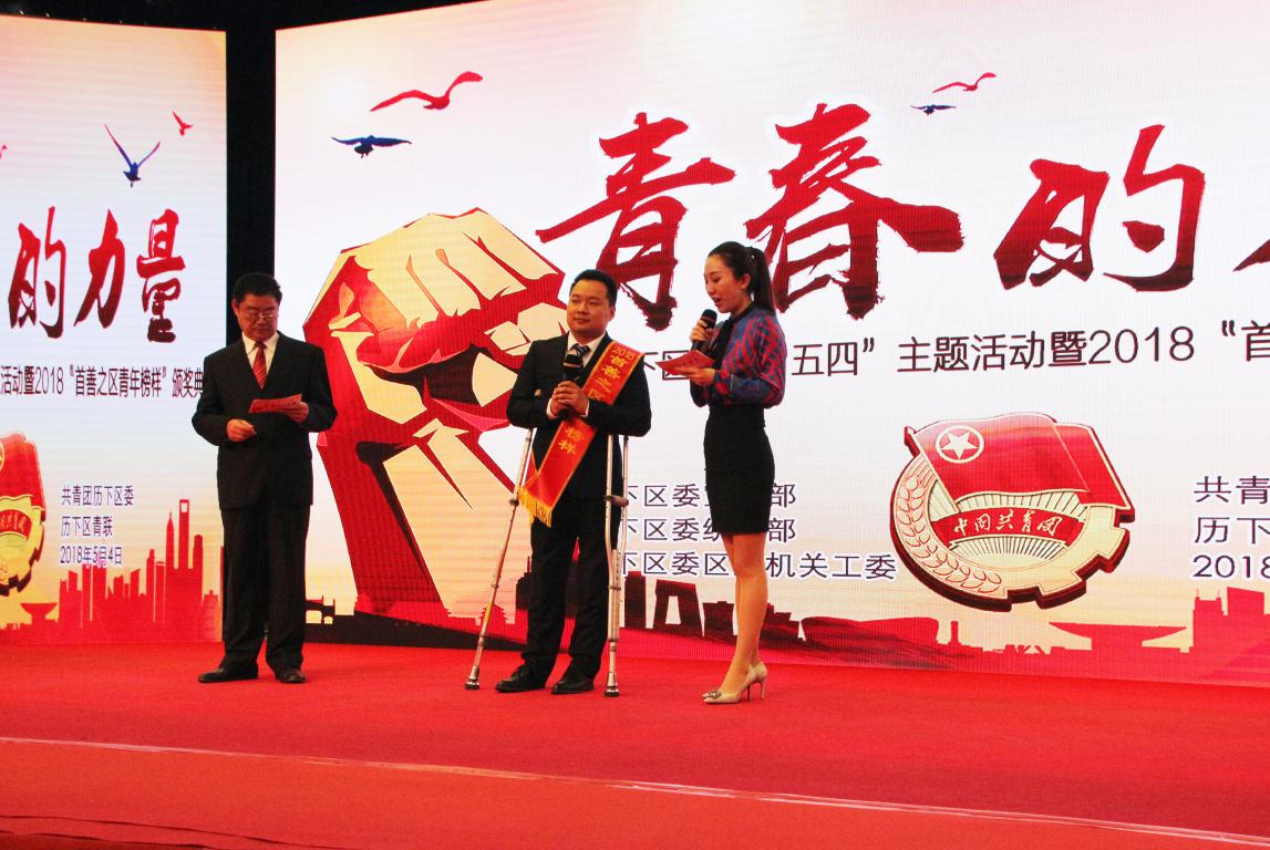 为更好地学习贯彻党的十九大精神和习近平新时代中国特色社会主义理论,深入推进“勇做夺标突击手,争当济南第一团”活动, 5月4日上午,纪念“五四”主题活动暨“2018首善之区青年榜样”颁奖典礼在历下大厦隆重举行。历下区委副书记尹红梅,区委常委、组织部部长续明,区委常委、统战部部长杜宝现,副区长丁晓红,区政协副主席房玉萍等领导出席本次活动。我集团董事长王勇在本次活动中荣获2018“首善之区青年榜样”荣誉称号。