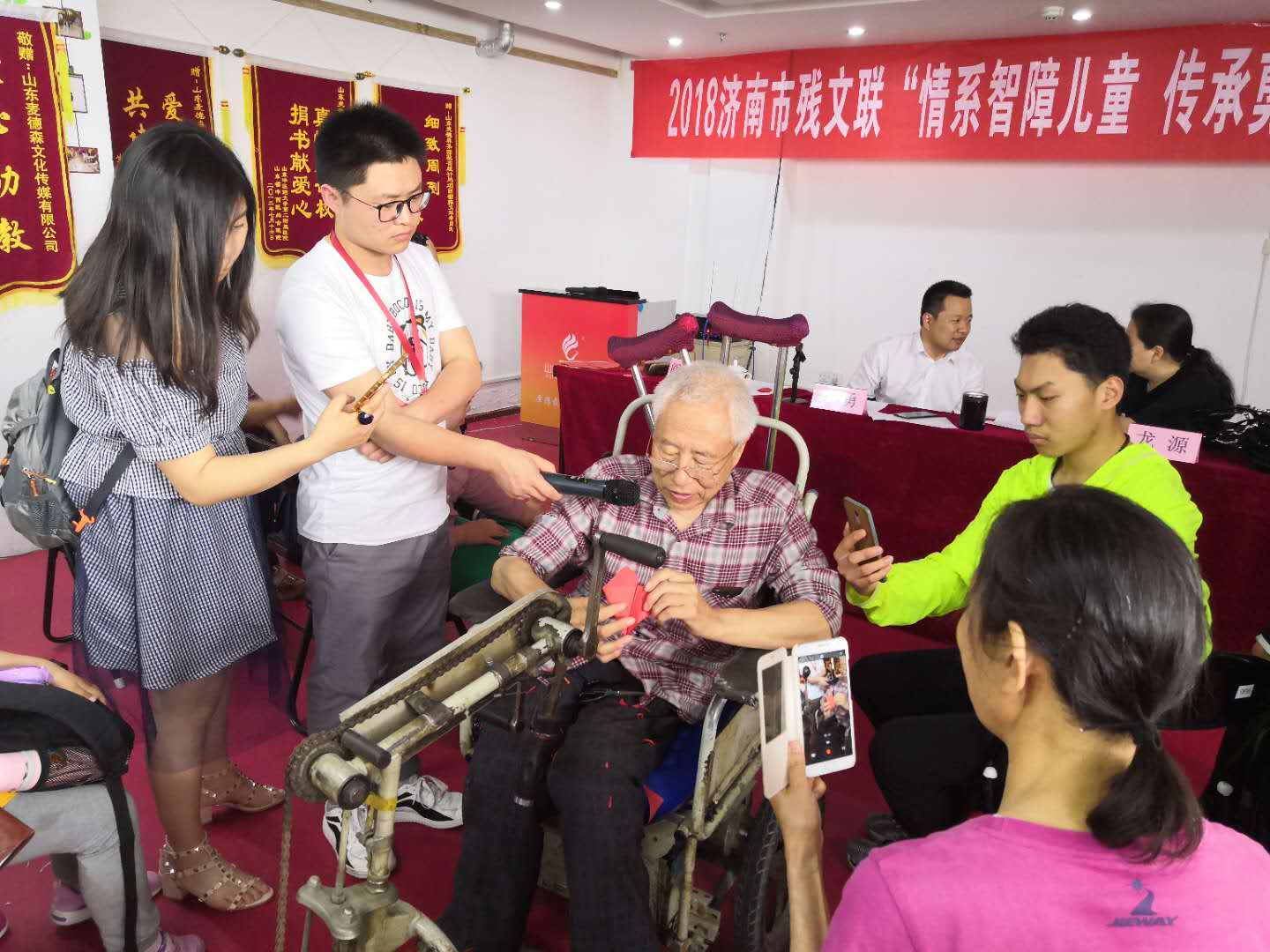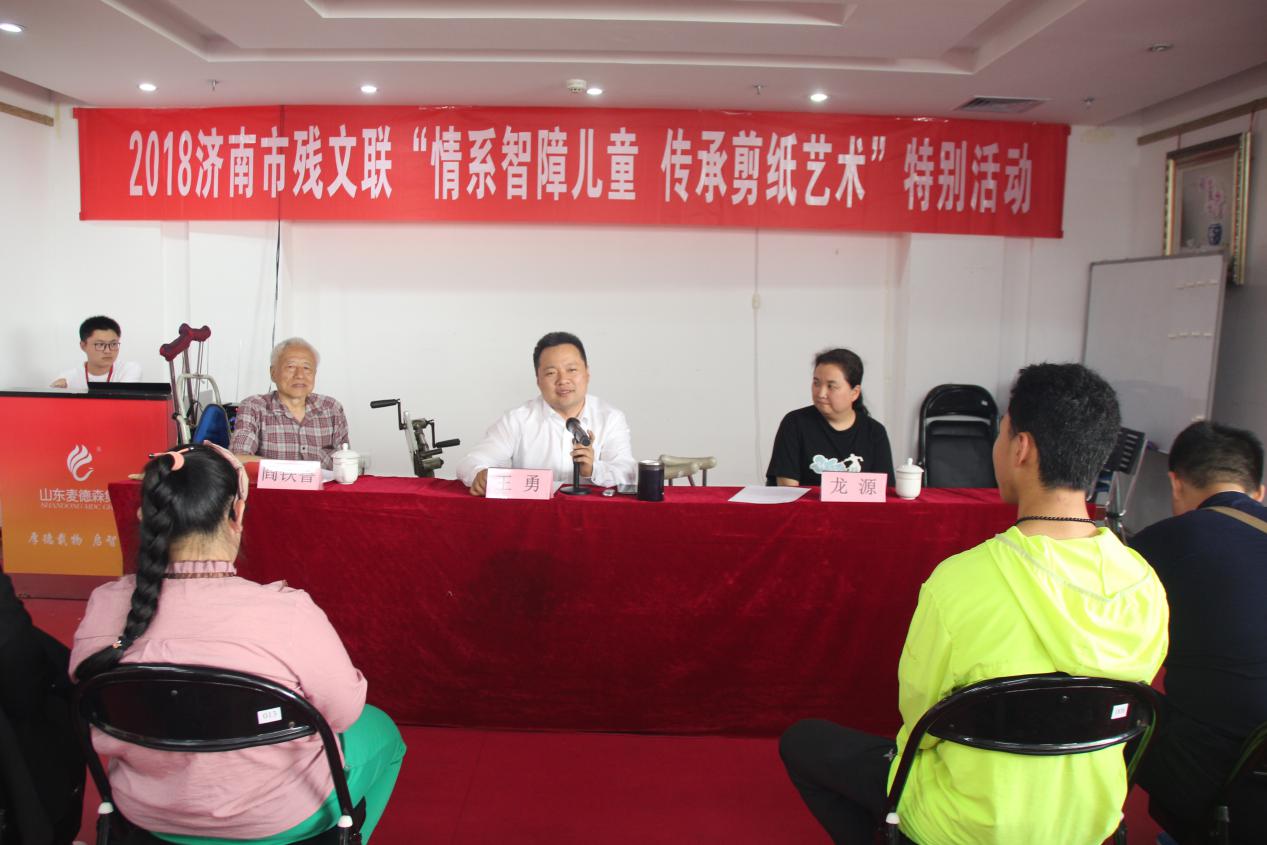 为进一步推进文艺助残工作,丰富残疾人精神文化生活,让智障儿童在和谐的社会氛围中感受到社会关爱和文化魅力。5月26日,由济南市残疾人文学艺术界联合会主办的“情系智障儿童 传承剪纸艺术”特别活动,在必威平台多功能活动室拉开帷幕,市残联主席团副主席、市残文联主席王勇,市残文联民间艺术协会主席阎铁鲁等艺术家出席此次活动。