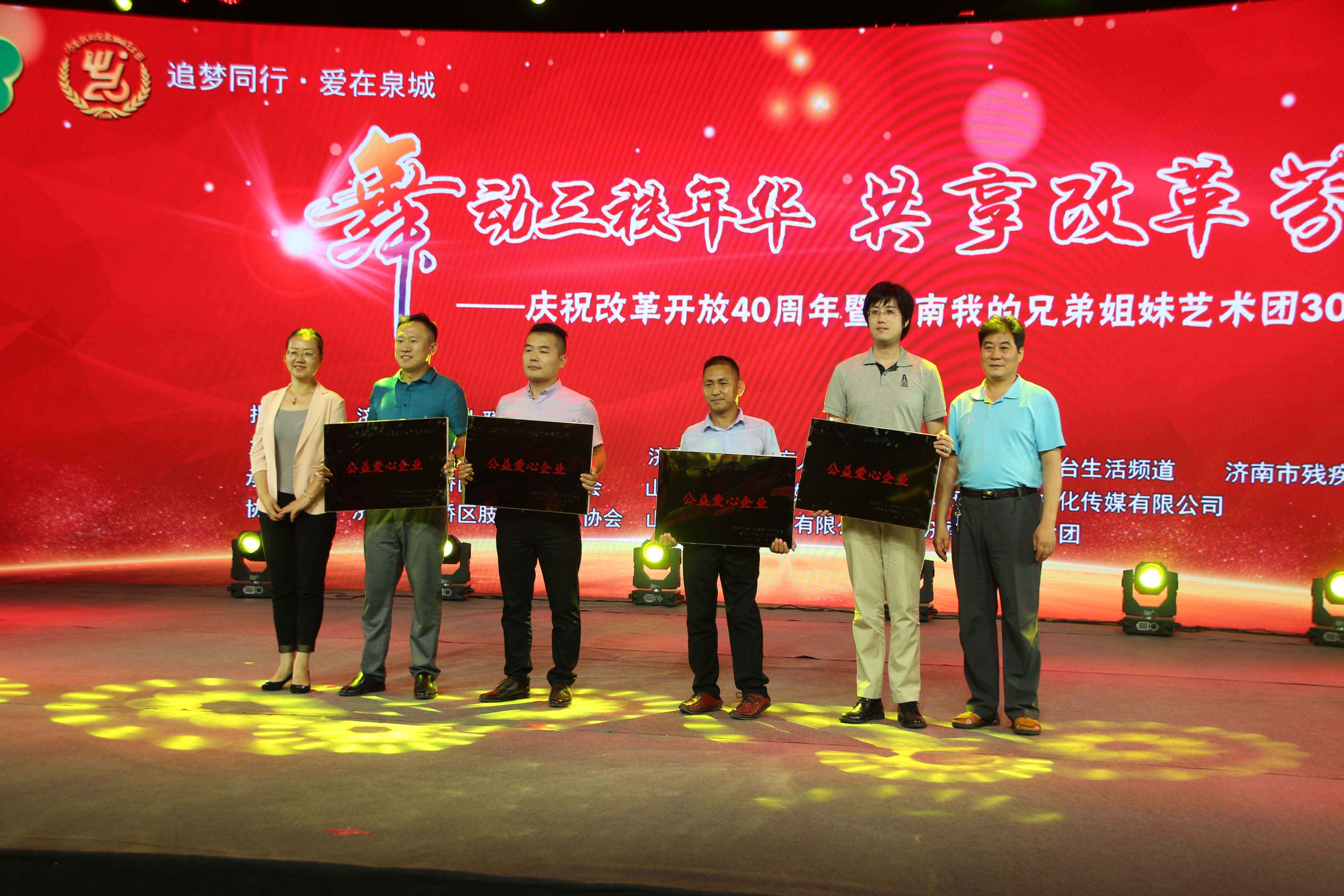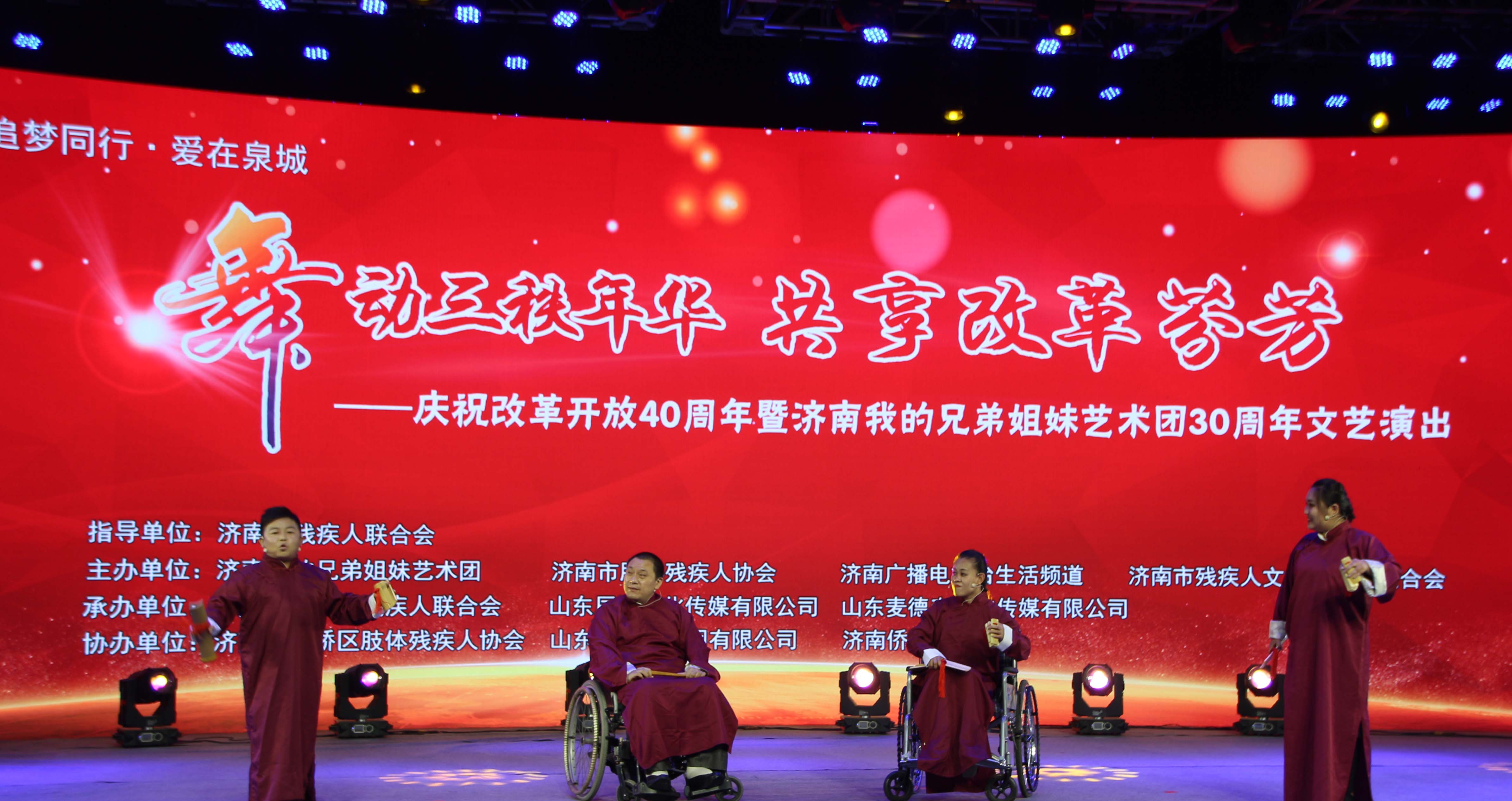 为庆祝改革开放40周年,济南我的兄弟姐妹艺术团成立30周年,8月11日,值第九个全国“肢残人活动日”到来之际,由我集团协助承办的“庆祝改革开放40周年暨济南我的兄弟姐妹艺术团30周年文艺演出”,在凤凰演播厅隆重举行。