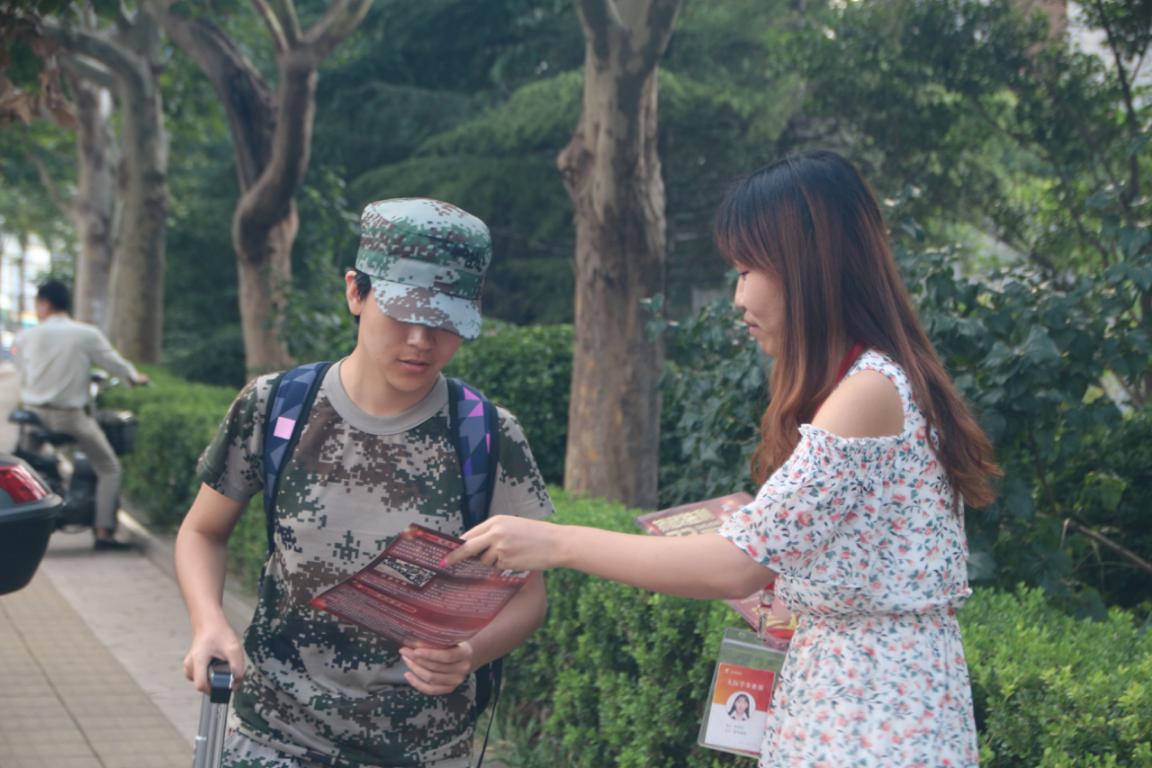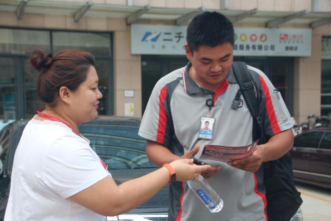 活动地点设立在齐源大厦楼前,大家将前期准备好的学习材料和矿泉水一一分发给往来的行人,并向大家介绍即将到来的抗战胜利纪念日,以及抗战胜利带给我们生活的影响,倡导大家积极学习了解抗战历史,以史为鉴,传递正能量。大家对此也非常关注,纷纷表示要认真积极的学习国家历史发展,弘扬伟大革命抗战精神,坚定个人理想信念,承担起自己的责任和使命。