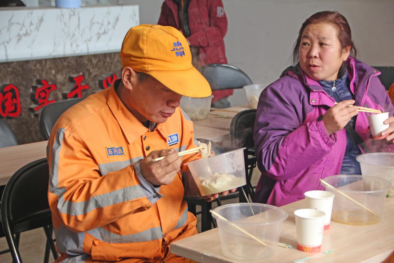 品尝过水饺,环卫工人还向党员突击队队员们表示了感谢,“能在小年这一天,在忙碌的工作之余吃上美味的饺子,我们感觉很幸福!”