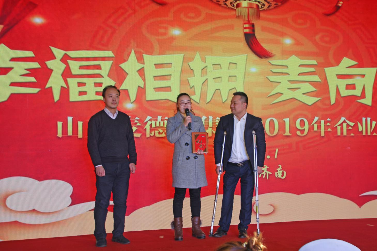 必威平台2018年度总结及表彰大会,于1月25日下午,在济南皇宫大酒店隆重举行,集团党支部副书记桑守正同志主持大会,会议包括集团各部门主管述职、董事长年度总结,以及年度先进表彰、颁奖等议程,集团全体员工参加了此次会议。