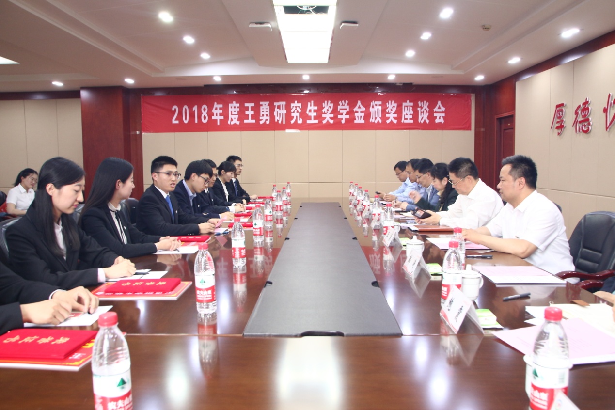 王勇博士在与获奖研究生的座谈交流中,分享了自己成长的经历和对人生的感悟,他勉励广大研究生:“穷则独善其身,达则兼济天下,希望大家努力学习,用知识武装自己,用实际行动回报社会,为国家现代化建设做出贡献。”随后,王勇博士为“王勇研究生奖学金”获得者颁发奖学金。