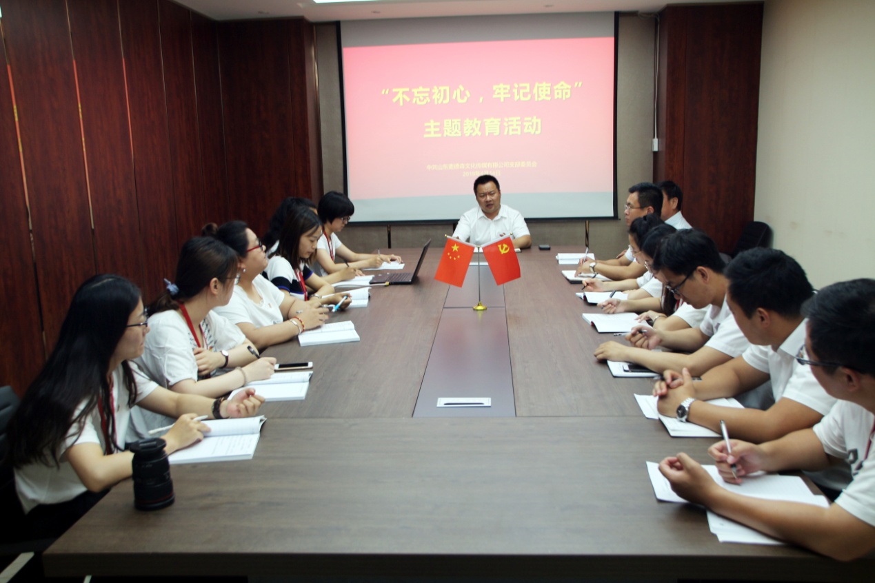 为强化集团党组织凝聚力,增强企业党员党性修养,铭记入党初心,牢记党员使命,6月14日,我集团党支部在7楼会议室组织开展“不忘初心,牢记使命”主题教育活动。集团党支部书记王勇博士出席活动并讲话,集团全体党员、入党积极分子参加活动。