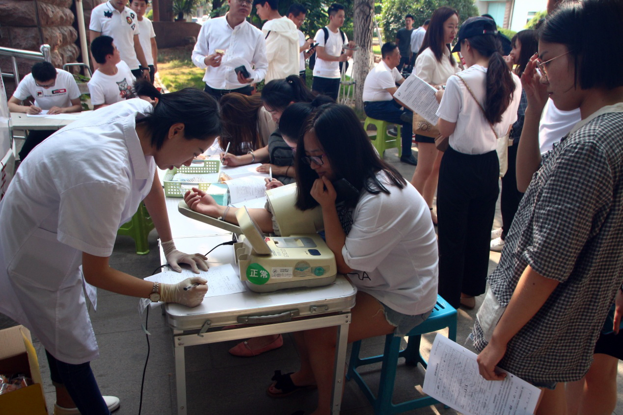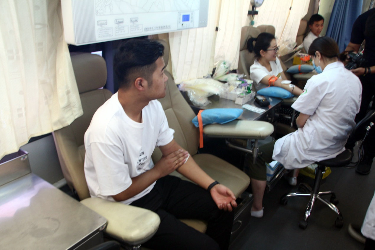 活动开始后,大家按照省血液中心医务人员的要求认真填写信息表,并依次接受血压测量、血样检验……在各项准备工作结束后,大家伸臂献血。