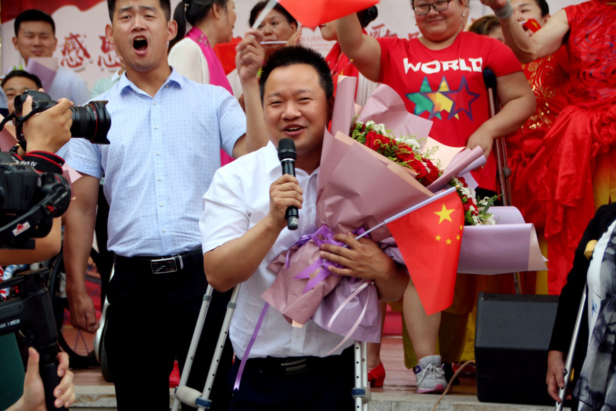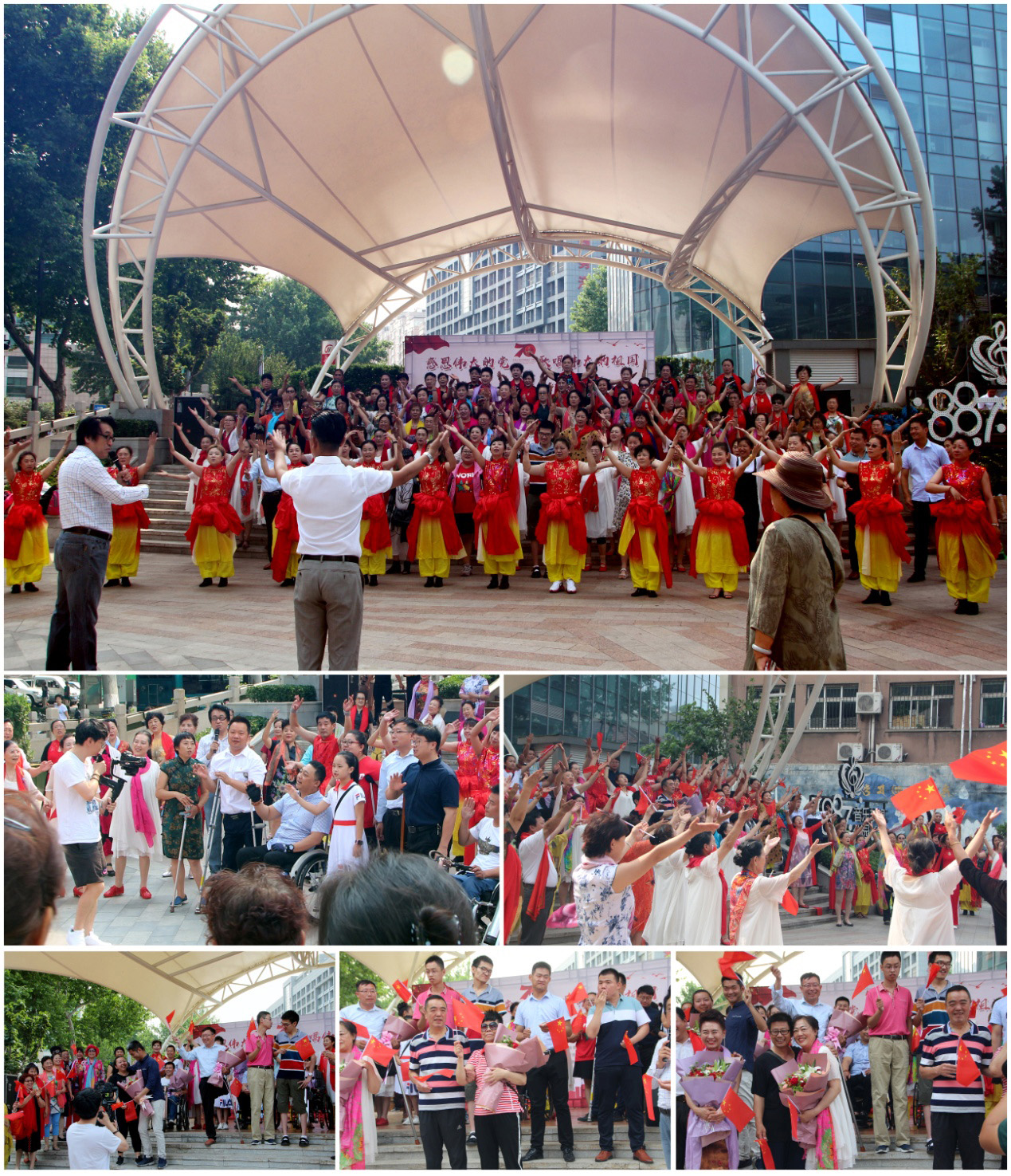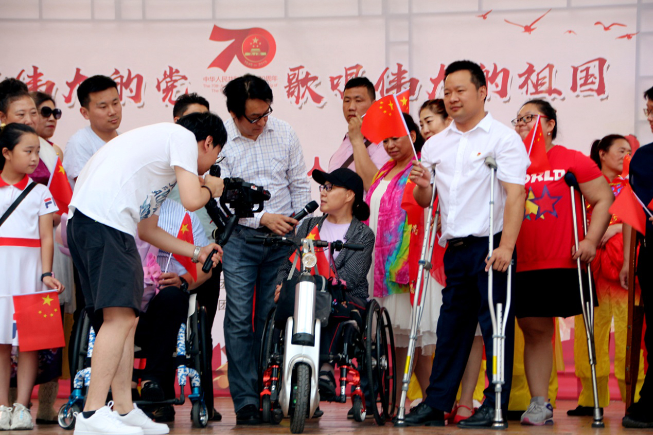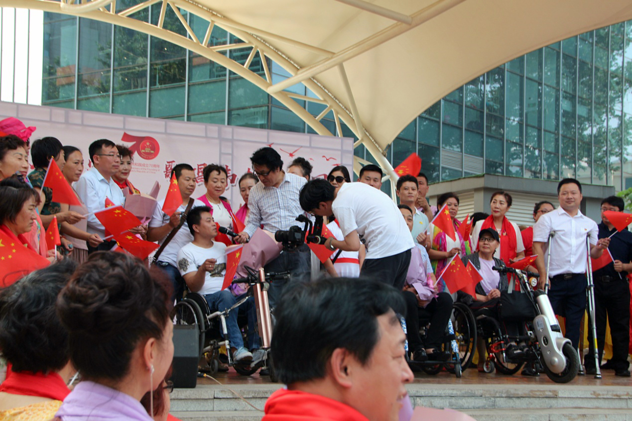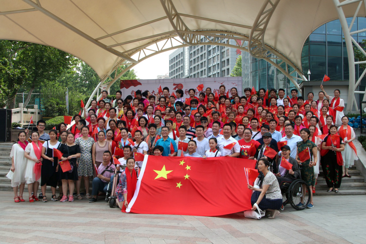 为庆祝党的第98个生日,庆祝祖国七十华诞,表达残疾兄弟姐妹对党的忠诚,对祖国的热爱之情,6月16日上午,由济南市残疾人文学艺术界联合会、济南市肢体残疾人协会、齐鲁文化艺术名家讲坛、山东省广场舞健身协会(筹委会)主办,济南市残疾人福利基金会、CCPARK创意港、新世纪文西影城、济南侨联艺术团、济南文促会大平艺术中心协办,我集团承办的“感恩伟大的党,歌唱伟大的祖国”——“勇哥有约”百人残疾人幸福交友会快闪活动在济南市CCPARK文化广场成功举办。