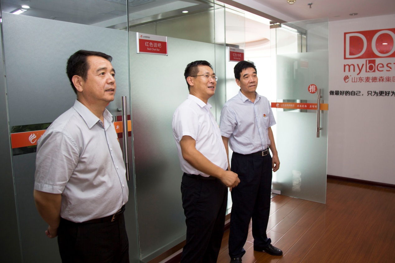 7月25日,济南市税务局党委副书记、副局长张吉茂,市局总经济师赵刚,济南市税务局考核考评处处长刘振新,系统党建工作处副处长王胜滋等领导一行莅临麦德森调研指导工作,并召开座谈会。历下区税务局局长张鹤华,麦德森集团总经理李校伟等陪同调研。