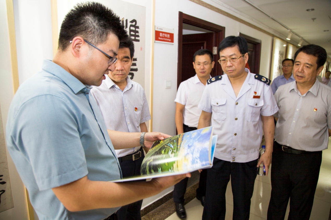 受集团党支部书记王勇博士的委托,李校伟向领导们详细介绍了以集团党员为核心的党员突击队和组织上高度融合、工作上相互促进的“长鼓型”党建工作法。集团业务部门负责人就“医学知识信息服务平台——‘博览医书’”、“史志年鉴编辑出版”等业务项目建设情况向各位领导作出介绍。