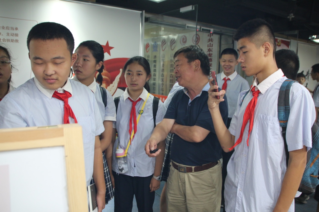 下午14时,济南燕山学校32级17中队的少先队员们率先抵达麦德森总部,开展“寻祖国70年建设者、争做小小追梦人”红领巾寻访活动。