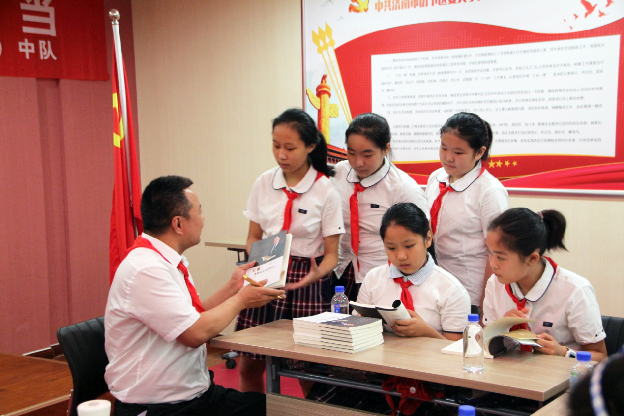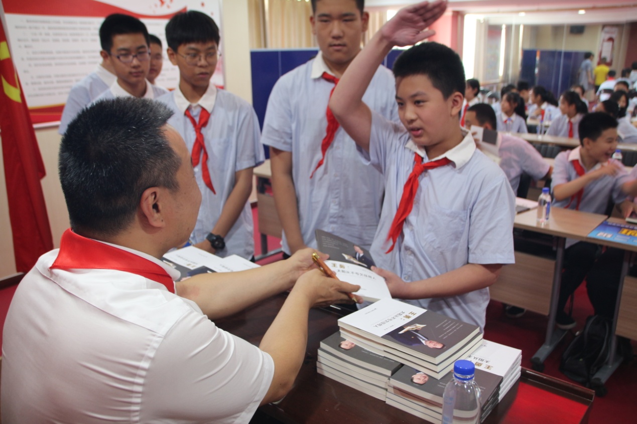 分享交流期间,王勇博士将自己的签名传记赠送给每一位少先队员。他勉励大家,作为新时代的少先队员,要坚定自身信仰、树立远大理想,勤奋学习、积极向上,用自己的行动为身边的同学们做出表率。