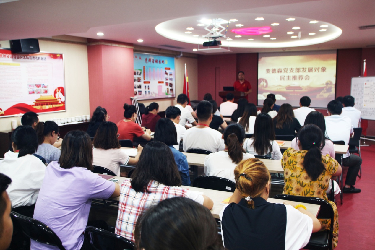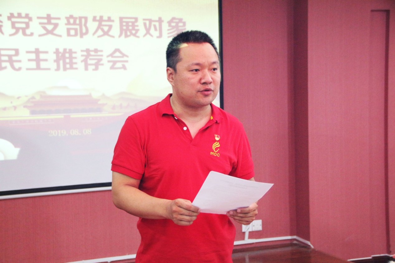 党支部书记王勇博士宣读了《关于确定张永华等六名同志为入党积极分子的决议》和《关于确定张姗姗、刘海盟、杨艳春为党员发展对象的决议》,对初步确定的入党积极分子、党员发展对象表示祝贺,并提出以下几点要求:一是党建引领与企业发展同频共振,大家要积极向党组织靠拢,向党员学习;二是继续坚持发展以党员为核心的党员突击队建设;三是志愿入党的麦德森人要在各突击队中加强锻炼,在工作和学习中不断提高党性认识,力争成为入党积极分子,早日加入党员行列。