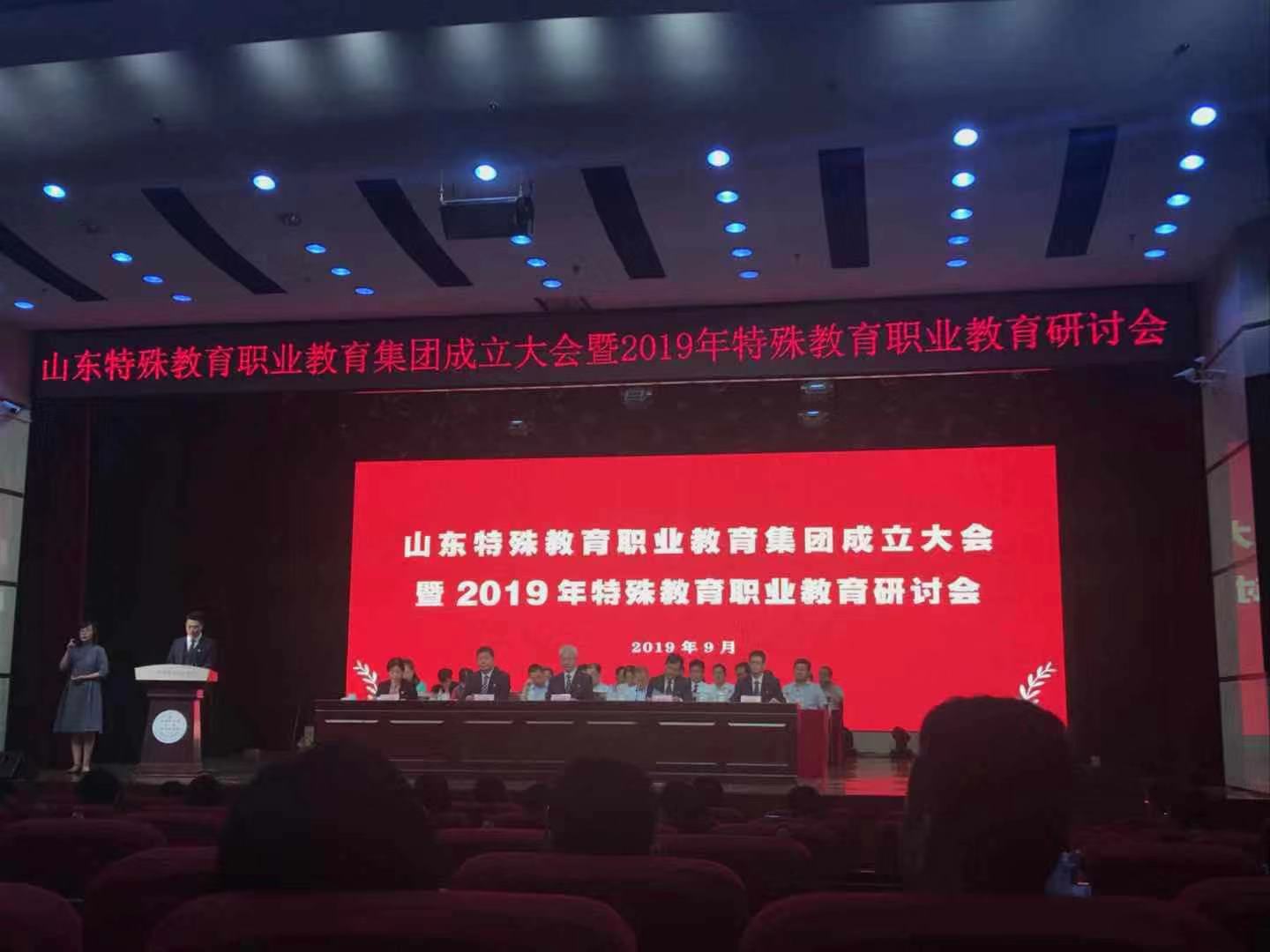 9月27日,山东特殊教育职业教育集团成立大会暨2019年特殊教育职业教育研讨会在山东特殊教育职业学院礼堂举行。