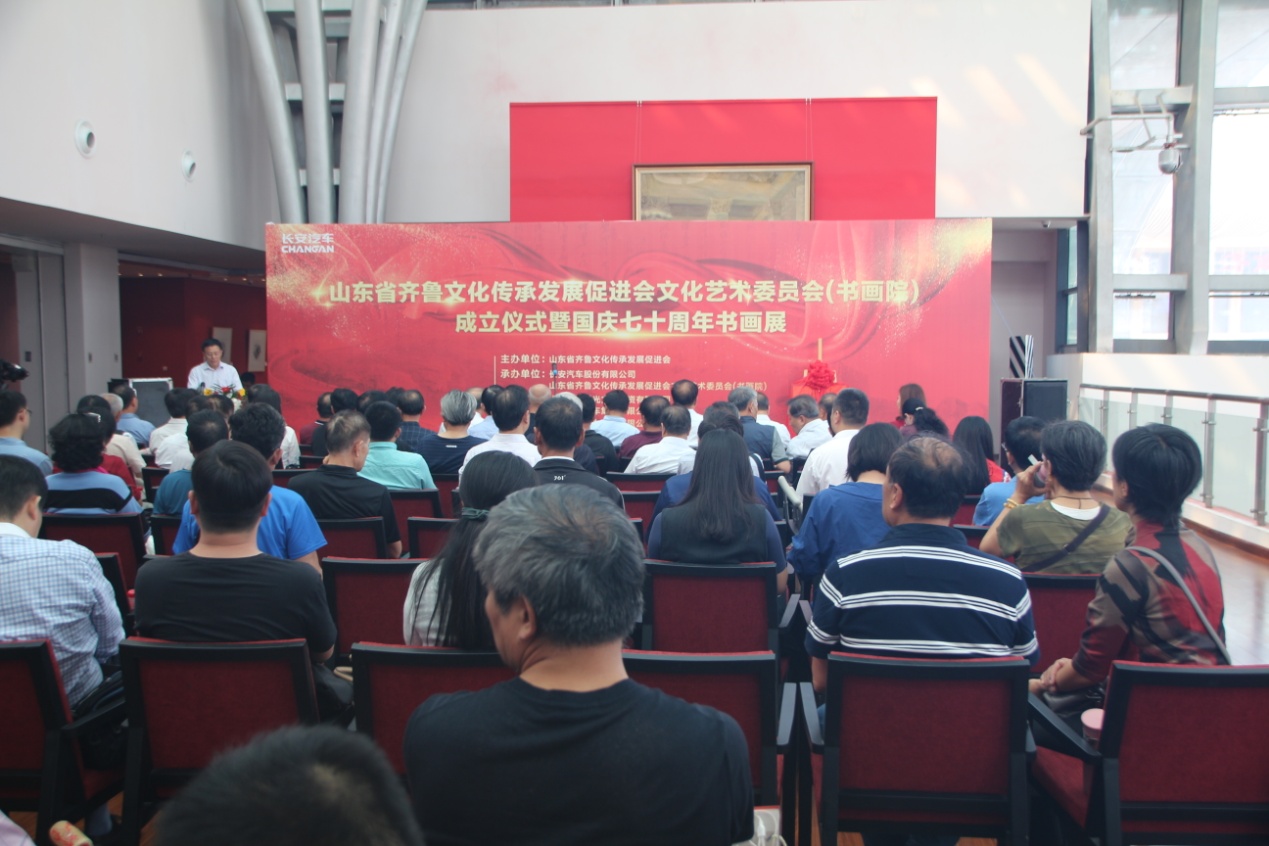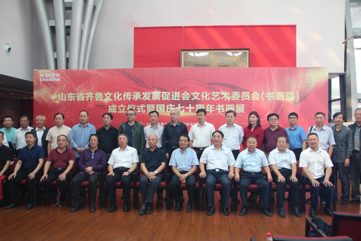 为传承齐鲁文化艺术精髓,繁荣艺术创作和人才培养,9月28日,由山东省齐鲁文化传承发展促进会主办的山东省齐鲁文化传承发展促进会文化艺术委员会(书画院)成立仪式暨国庆70周年书画展在时光艺术之城三楼隆重举行。