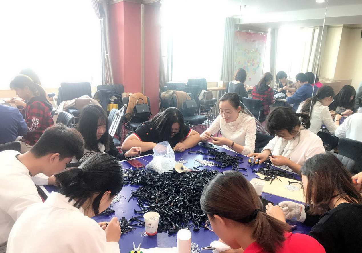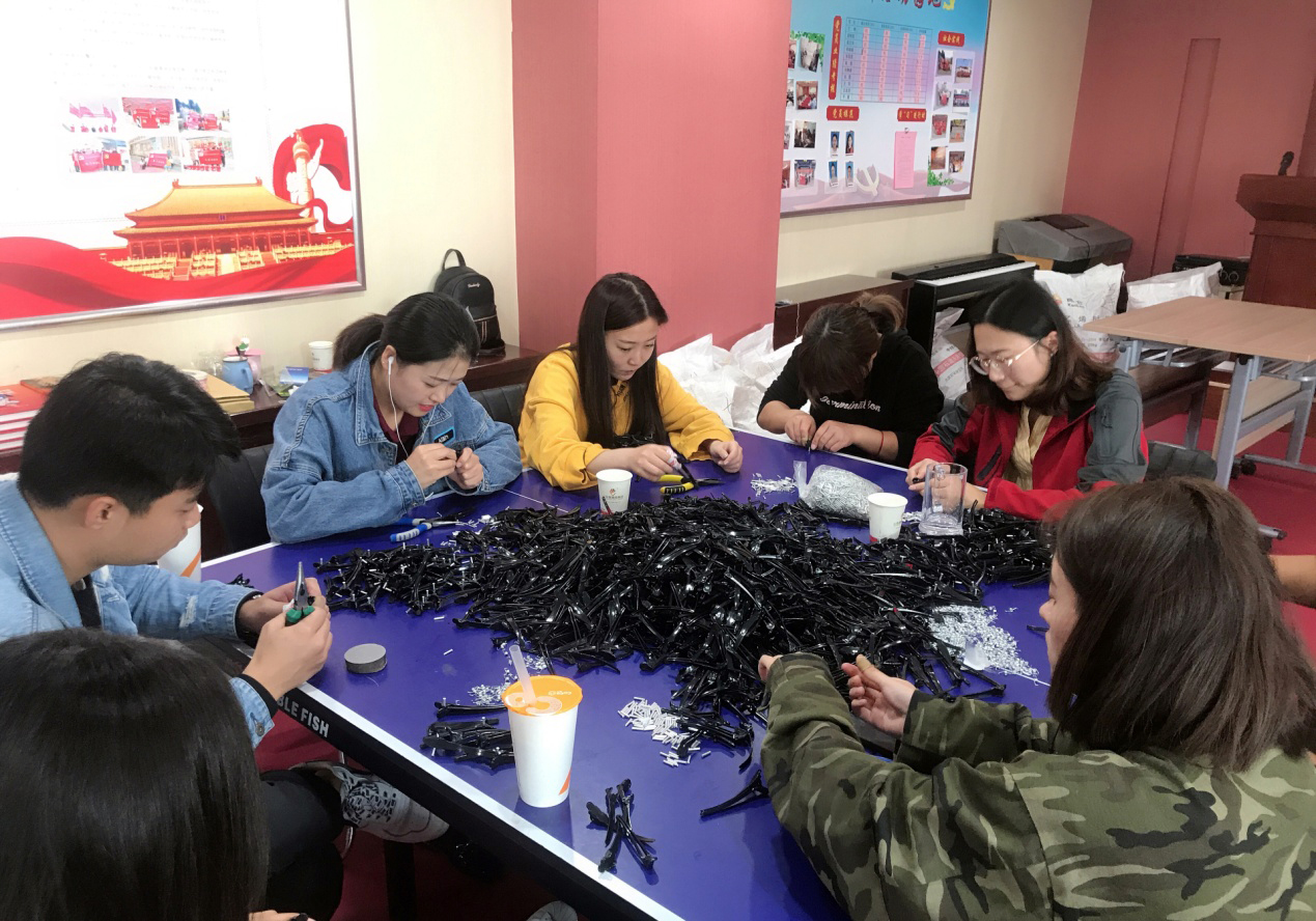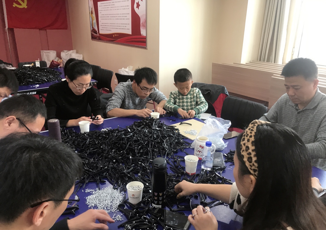 得知此事后,集团党支部五支党员突击队全体队员在不耽误自己本职工作的前提下,纷纷主动出击,承接突击任务,协助刘七沟村残疾人就业基地完成订单。10月19日-20日,在集团党支部书记王勇博士的带领下,五支党员突击队全体队员自愿放弃宝贵的周末假期,全员来到突击任务一线,投入到紧张而有序的突击工作中。