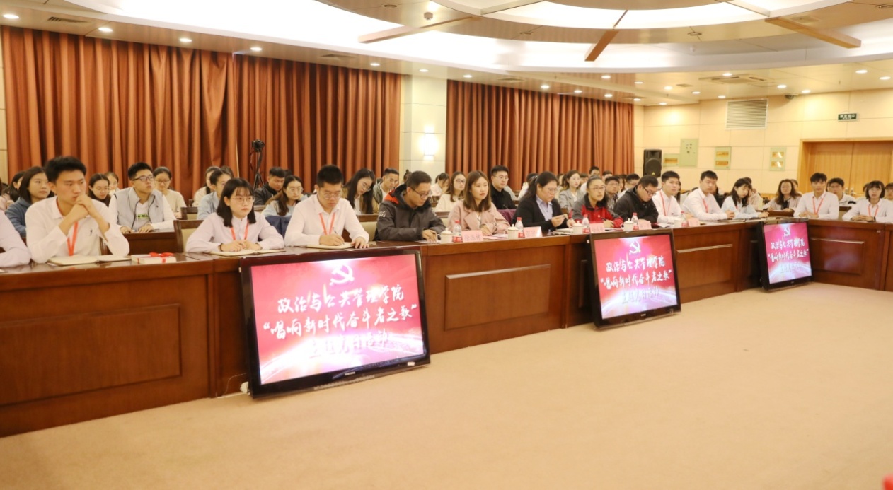 活动伊始,政治与公共管理学院党总支书记丁萍向大家详细介绍了“全国自强模范”“中国青年五四奖章”获得者王勇同志的先进事迹。在全场热烈的掌声中,王勇博士走上讲台,为现场广大师生讲授了一堂精彩生动的主题党课公开课。