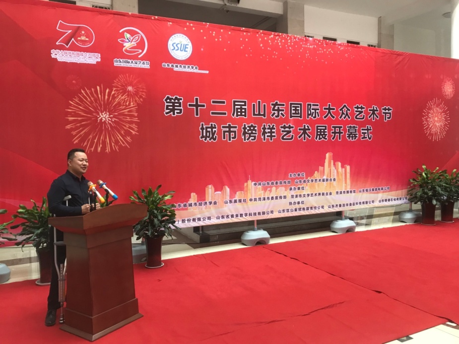 10月26日,由山东省委宣传部、省文联联合主办,菏泽市委宣传部、菏泽市文联、山东省城市经济学会、山东画报社联合承办的第十二届“山东国际大众艺术节城市榜样”艺术展开幕式在菏泽市博物馆隆重举行。我集团党支部书记王勇博士作为此次“城市榜样”艺术展的代表出席开幕式并讲话。