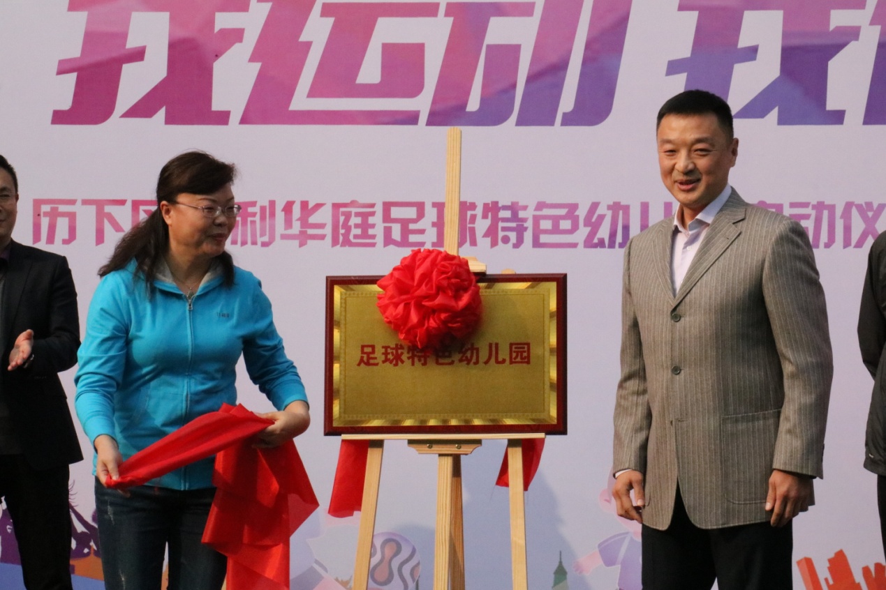 历下区保利华庭幼儿园作为济南市幼儿园的代表,在历下区教育和体育局、历下区足球协会、足球俱乐部的引领和指导下,积极开展足球等项目活动,不断打造新环境、树立新理念、营造新风貌,荣获教育部颁发的“全国足球特色幼儿园”,历下区教育和体育局体育科崔巍科长为保利华庭幼儿园“足球特色幼儿园”揭牌。