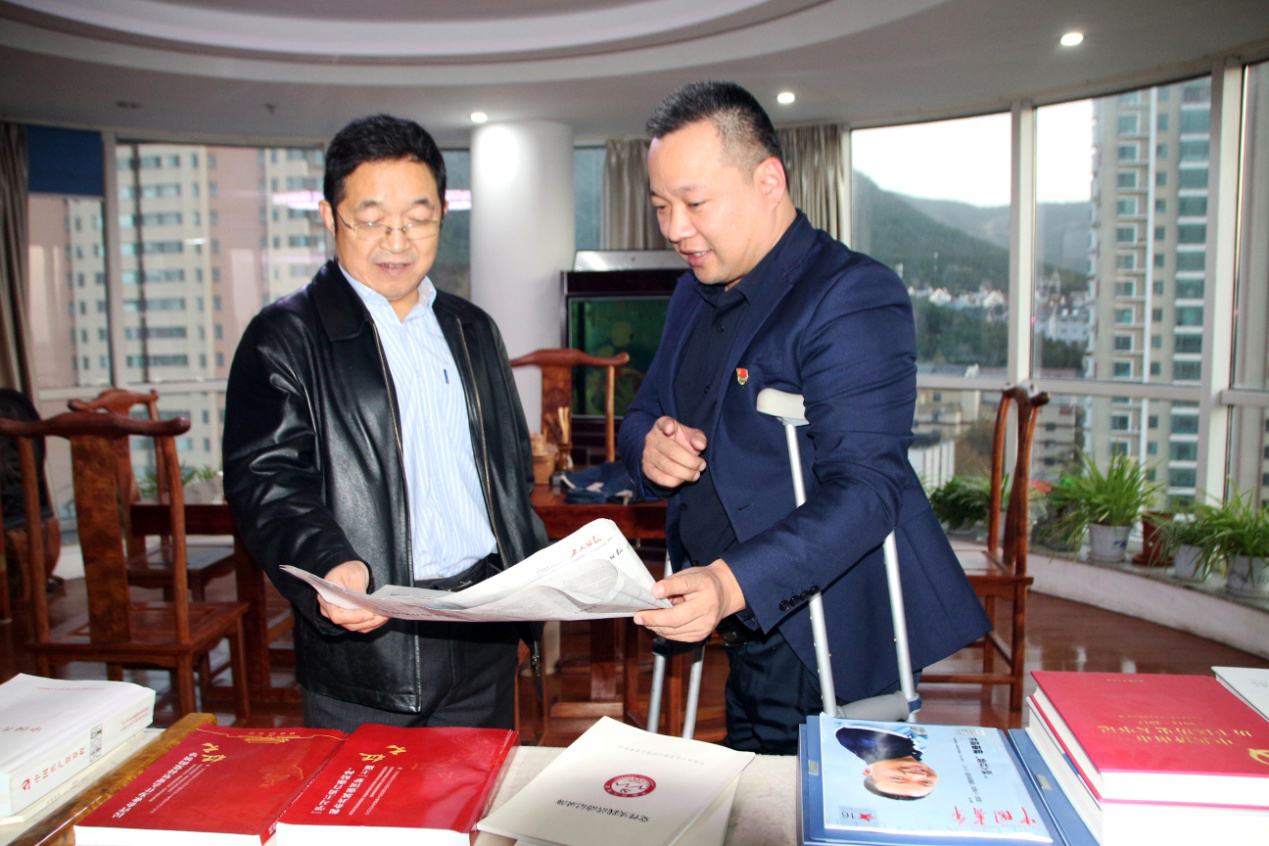 在王勇博士的带领下,程强处长一行依次参观了集团党建活动室、残疾人文化长廊、“艺盟苑”公益书画培训教室、以及集团大医学事业部、史志事业部、“博览医书”大数据平台项目等各业务职能部门办公区域。